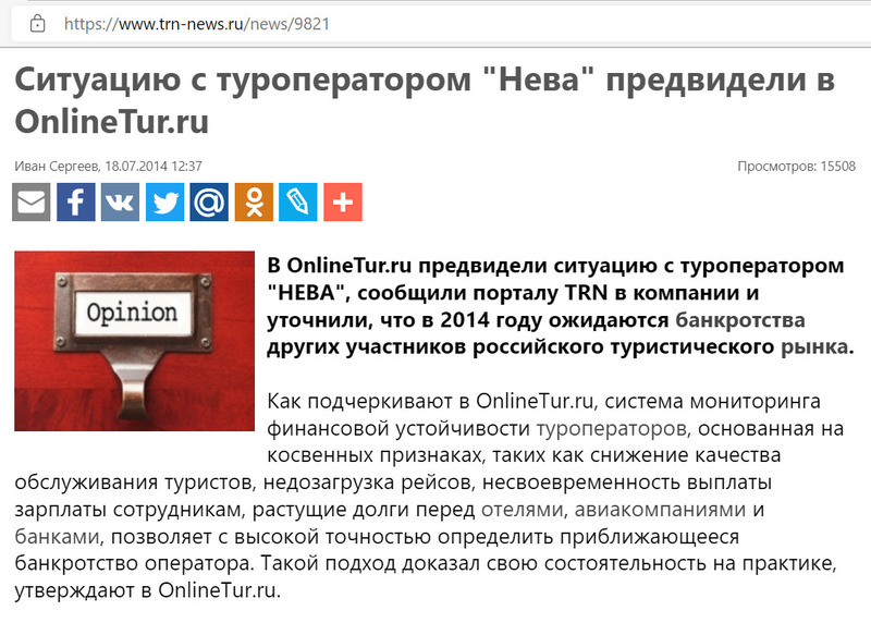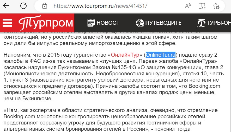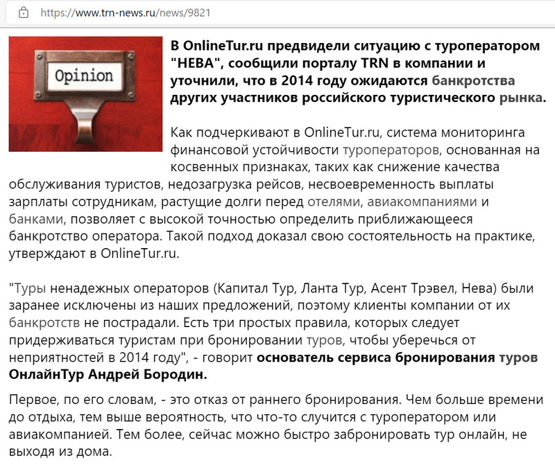 Благодаря защите интересов туристов и открытости, платформа OnlineTur.ru, согласно данным компании «Медиалогия», является самой цитируемой в деловой прессе на туристическом рынке России.